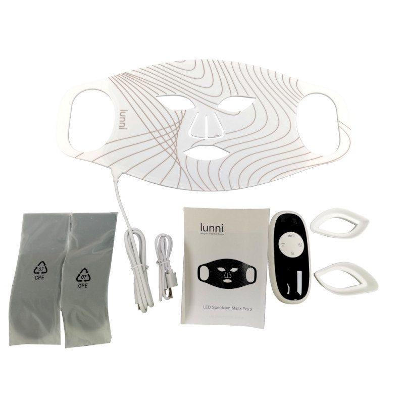 Lunni 7 Colors LED and Near-Infrared Light Silicone LED Facial Mask, White – pažangi silikono veido kaukė, skirta odos priežiūrai namuose. Kaukė naudoja 7 spalvų LED šviesą ir artimąją infraraudoną šviesą (Near-Infrared Light), kad skatintų kolageno gamybą, pagerintų odos elastingumą ir sumažintų smulkias raukšleles. Minkštas silikono paviršius užtikrina komfortą, o ergonomiškas dizainas prisitaiko prie veido kontūrų. LED terapija padeda odai atsigauti, mažina raudonumą ir gerina odos tonusą.