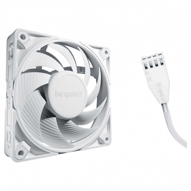 "be quiet! BL118. Type: Fan, Fan diameter: 12 cm, Airflow: 142.5 m³/h, Maximum air pressure: 5.31 mmH2O, Bearing type: Fluid Dynamic Bearing (FDB). Voltage: 7 - 13.2 V. Width: 120 mm, Depth: 120 mm, Height: 25 mm. Product colour: White"\n"Silent Wings Pro 4 120mm PWM White is the most progressive, performant and versatile fan by be quiet!