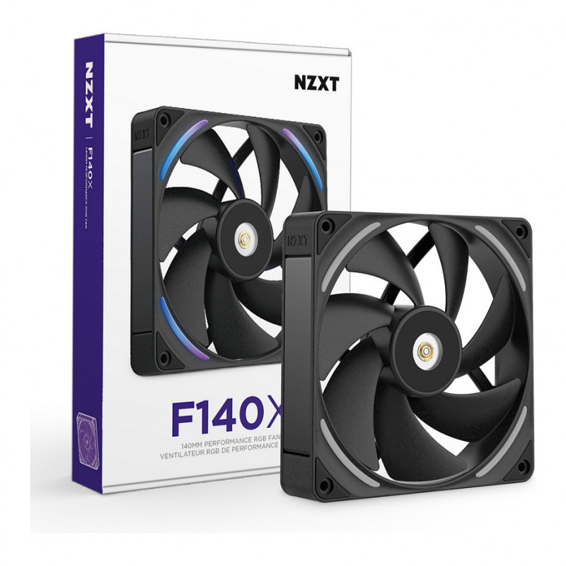 "NZXT F140X. Type: Fan, Fan diameter: 14 cm. Width: 140 mm, Depth: 30 mm, Height: 140 mm. Product colour: Black"\n"The NZXT Performance Fans deliver powerful, quiet cooling with LCP construction, optimized blades, and a hybrid bearing system for superior airflow and durability. A reinforced core, advanced motor, and subtle RGB lighting combine performance and style for any gaming PC.