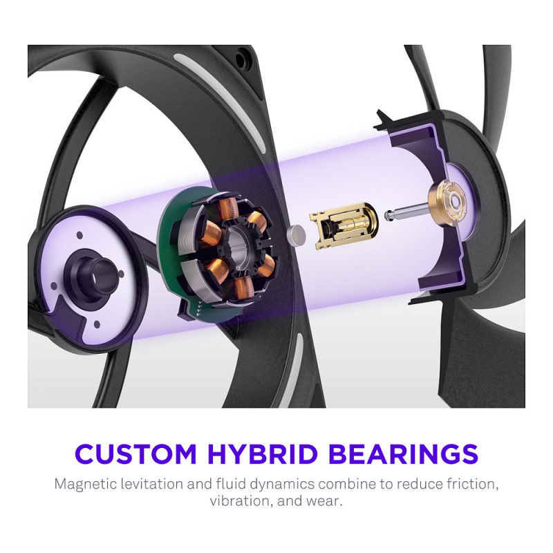 With every element engineered for superior cooling, NZXT Performance fans — our most powerful yet — feature LCP construction, optimized blades, and hybrid bearings to deliver exceptional airflow and static pressure with minimal noise, accented by subtle lighting for a premium, personal touch.