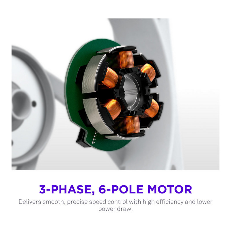 - Advanced Motor: 3-phase, 6-pole design delivers smoother, more precise speed control for steady, efficient cooling with less noise.