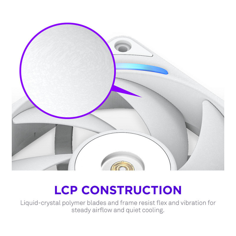 - LCP Construction: Liquid-crystal polymer blades and frame maintain their shape at high speeds, resisting flex and vibration for more powerful, consistent cooling.