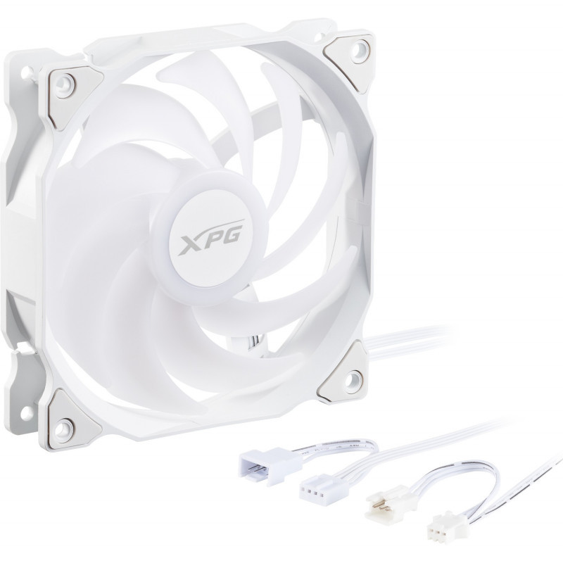 "XPG VENTO 120 ARGB PWM White. Type: Fan, Fan diameter: 12 cm, Rotational speed (min): 300 RPM, Rotational speed (max): 1850 RPM, Maximum air pressure: 1.5 mmH2O, Bearing type: Rifle bearing. Voltage: 5 - 12.6 V. Product colour: White"\n"VENTO 120 ARGB PWM