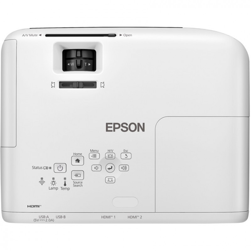 "Epson EB-W55. Projector brightness: 4000 ANSI lumens, Projection technology: 3LCD, Projector native resolution: WXGA (1200x800). Light source type: Lamp, Service life of light source: 6000 h, Service life of light source (economic mode): 12000 h. Focus: Manual, Focal length range: 16.9 - 20.28 mm, Aperture range (F-F): 1.49 - 1.72. Service port type: USB Type-B. Wi-Fi standards: 802.11a, 802.11b, 802.11g, Wi-Fi 4 (802.11n)"\n"Experience immersive entertainment and dynamic business presentations with this affordable WXGA lamp projector. Compact and lightweight with an easy setup, it offers high-tech features and impressive large display up to 320 inches. Thanks to Epson's 3LCD technology with 4,000 lumens Colour Light Output (CLO), you will enjoy vibrant and detailed lifelike images, even in bright ambient light rooms