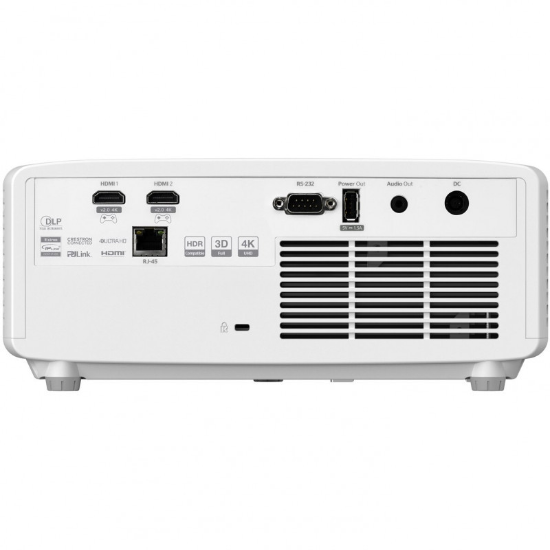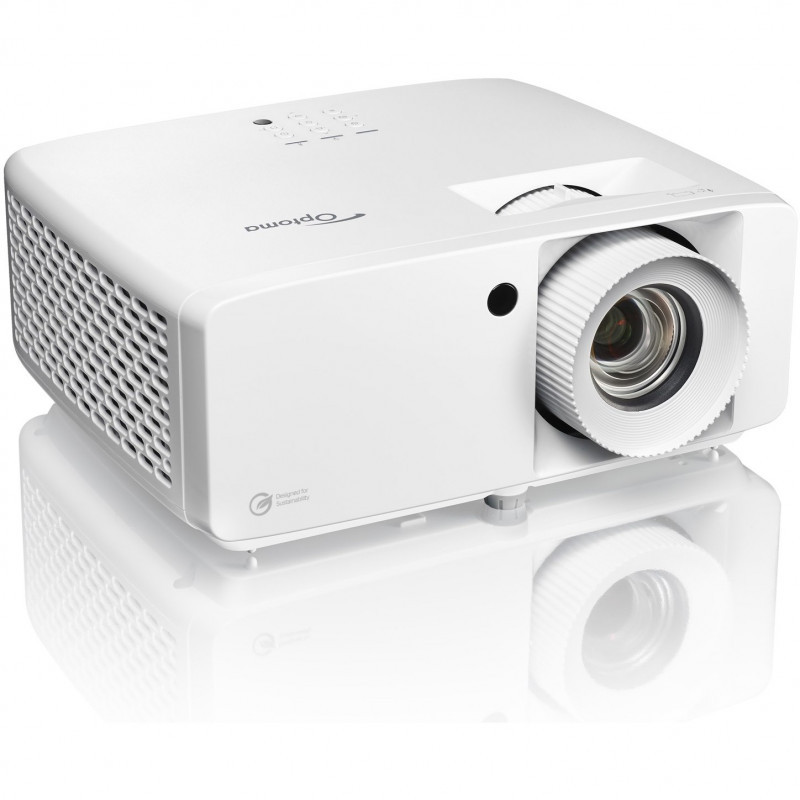"Optoma UHZ35. Projector brightness: 3500 ANSI lumens, Projection technology: DLP, Projector native resolution: UHD 4K (3840x2160). Light source type: Laser, Service life of light source: 30000 h. Zoom type: Fixed, Throw ratio: 1.4:1 ~ 2.24:1, Offset: 116%. Analog signal format system: NTSC 3.58, NTSC 4.43, NTSC J, NTSC M, PAL 4.43, PAL B, PAL D, PAL G, PAL H, PAL I, PAL M, PAL N,..., Supported graphics resolutions: 640 x 480 (VGA), 800 x 600 (SVGA), 1024 x 768 (XGA), 1280 x 1024 (SXGA), 1280 x 720 (HD 720), 1280..., Supported video modes: 480i, 480p, 576i, 576p, 720p, 1080i, 1080p. Serial interface type: RJ-45, RS-232"\n"Eco-friendly compact high brightness 4K UHD laser projector