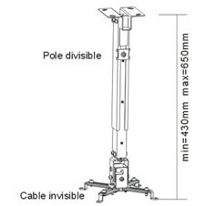 "SUNNE PRO02. Mounting type: Ceiling, Maximum weight capacity: 20 kg, Product colour: Silver"\n"- Ceiling Projector Bracket.