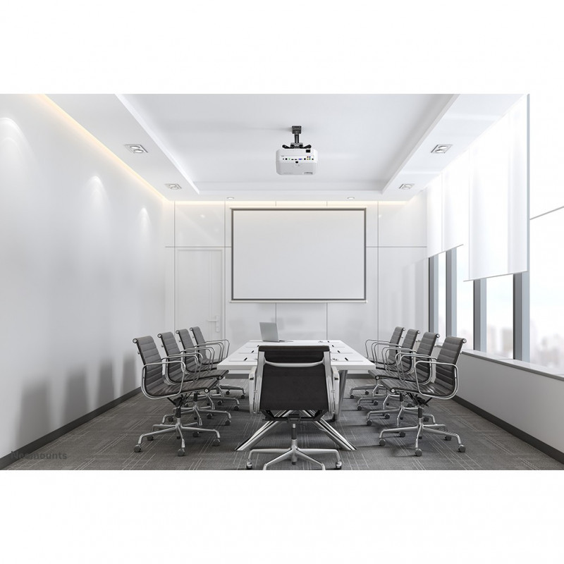 The Neomounts CL25-530BL1 is equipped with an Easy-release system, which highly eases installation; (de)installation of the projector to the projector mount can be done in an instant and by only one person. In addition, the round pole allows easy installation to a suspended ceiling. Finally, the pole of the Neomounts projector mount can be tilted on the ceiling side, so that installation against a sloped ceiling is effortless. The fixation of the mount itself is sturdy and firm, therefore vibration free.