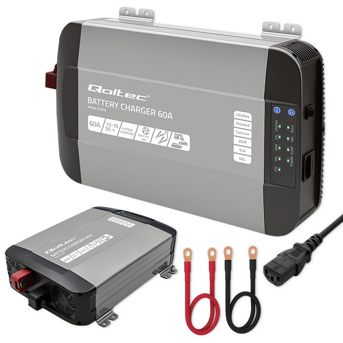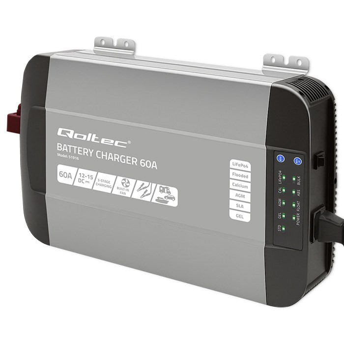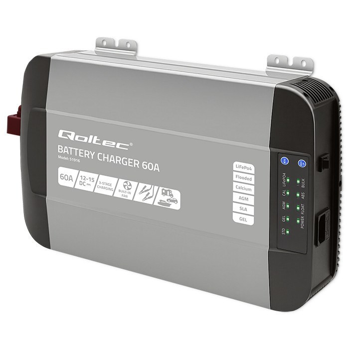 Qoltec 51916 Išmanusis „Monolith“ įkroviklis LiFePO4 AGM GEL SLA akumuliatoriams | 60A | 12V