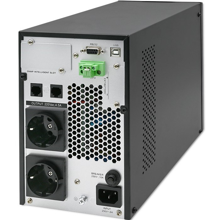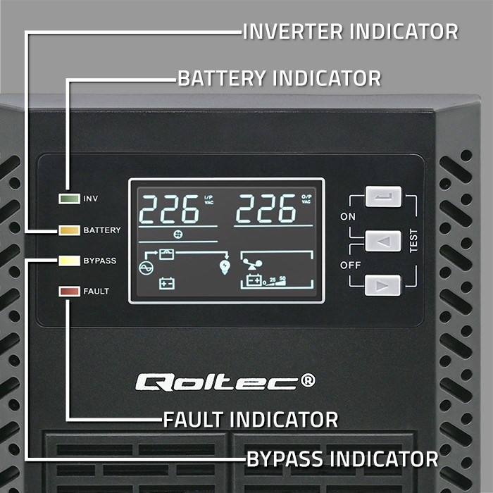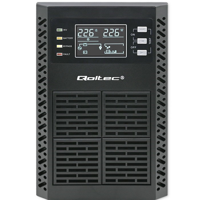 Qoltec 52280 Nepertraukiamo maitinimo šaltinis (UPS) | 1 kVA | 1000 W | Galios koeficientas 1.0 | LCD | EPO | USB | Internetinis
