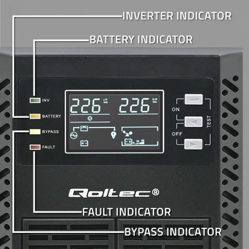 Qoltec 52281 nepertraukiamo maitinimo resursai (UPS) Dviguba konversija (prisijungus) 2 kVA 2000 W 3 AC išvestis(ys / čių)