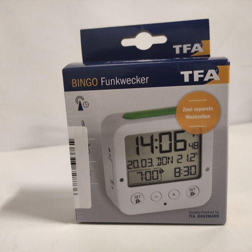 Ecost prekė po grąžinimo TFA Dostmann 60.2528.01 Bingo Radijo bangomis valdomas žadintuvas