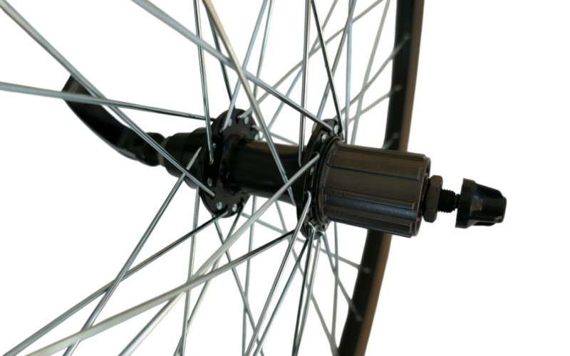 622 x 23, 10 x 135 mm QR, Joytech stebulė, 8-11 pavarų, 36H, V-Brake, aliuminis dvigubas ratlankis, juodas