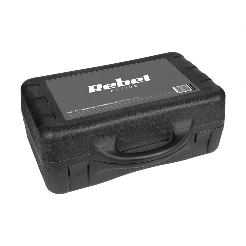 REBEL ACTIVE reguliuojamo svorio hanteliai dėkle, 30 kg, su štanga