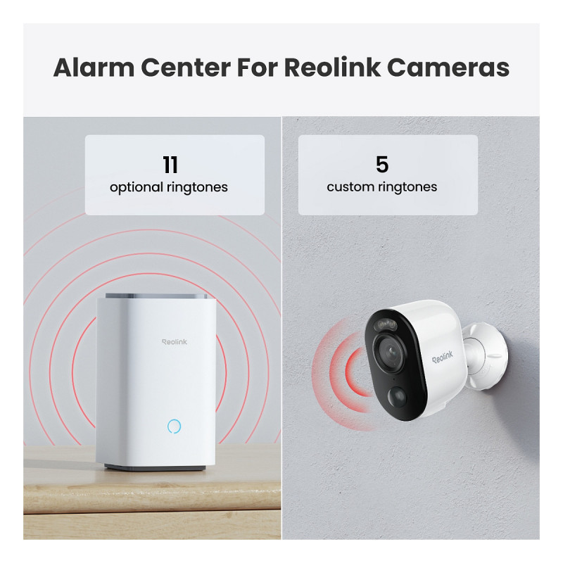 When any of the IP cameras connected to the hub triggers an alarm, it can also activate the hub's siren with 11 selectable ringtones and 5 custom sounds.