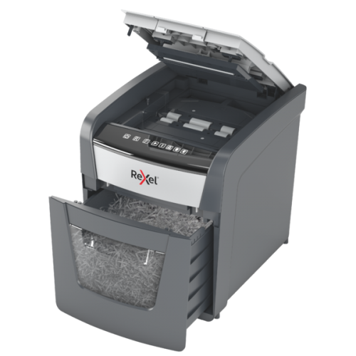 P-4 smulkina gabaliukais (4x28 mm) 20 l talpos ištraukiama dėžė „Anti-jam“ technologija Susmulkina kreditines korteles, sąsagėles ir sąvaržėles 10 minučių nepertraukiamai veikia su ventiliatoriaus aušinimu. Jutiklinis valdymo skydelis Itin mažas 55 dBA triukšmo lygis Infraraudonųjų spindulių dėžės jutiklis 2 metų garantija, 2 metų pjoviklio garantija