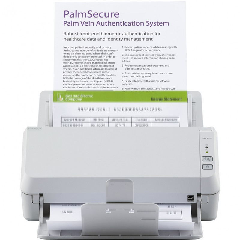 "Ricoh SP-1130N. Maximum scan size: 210 x 297 mm, Optical scanning resolution: 600 x 600 DPI, Output colour depth: 24 bit. Scanner type: ADF scanner, Product colour: Grey. Sensor type: CMOS dual CIS, Light source: RGB LED, Scan file formats: PDF. Maximum ISO A-series paper size: A4. USB version: 3.2 Gen 1 (3.1 Gen 1)"\n"The 2nd generation SP-1130N scanners are designed to meet the essential scanning needs of budget-conscious organisations, or those taking their first steps towards a structured scanning approach: