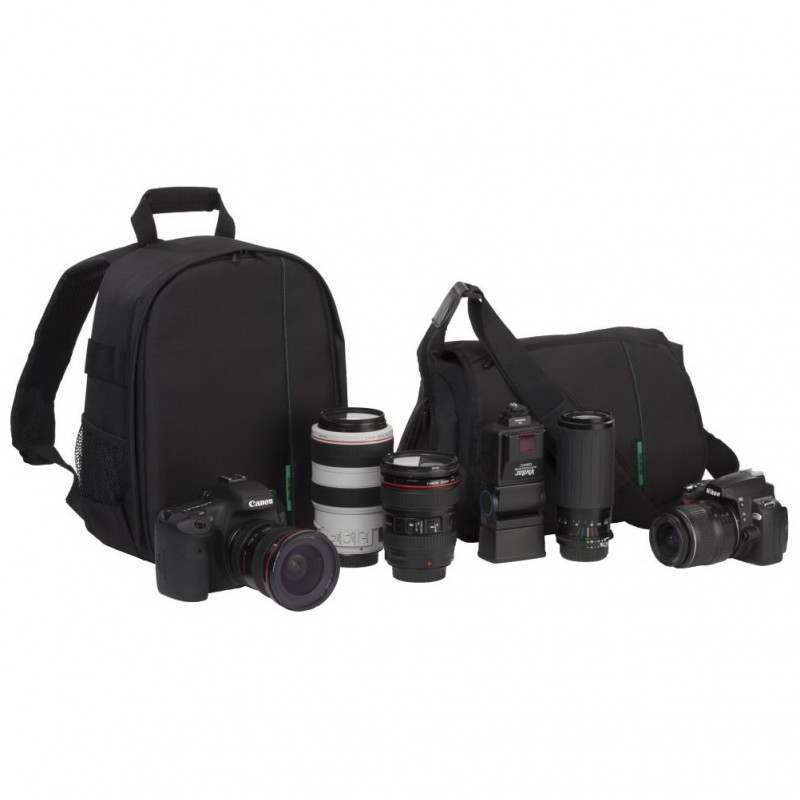 - Holds SLR camera body with attached lens and 2 additional lenses and accessories.