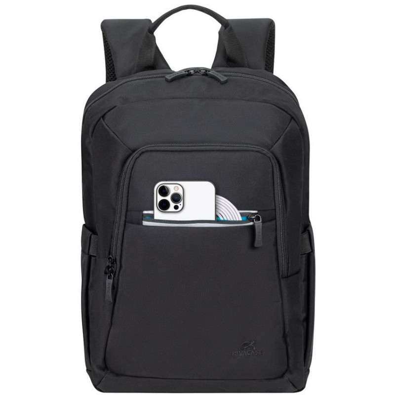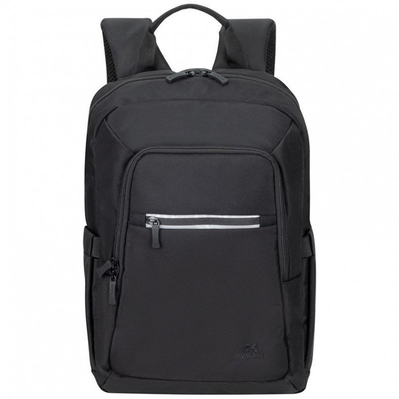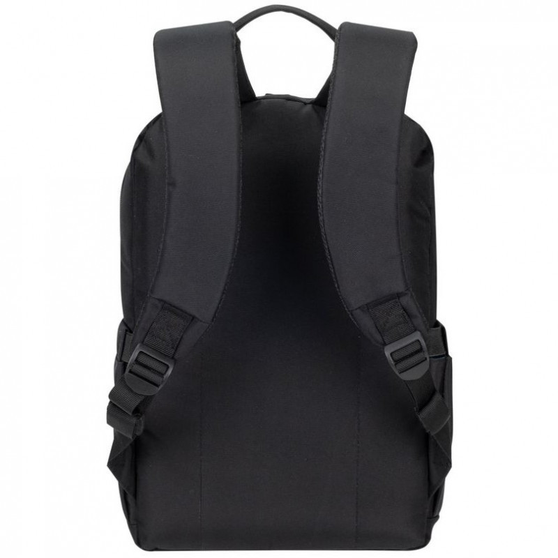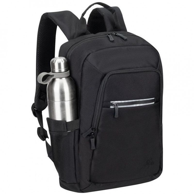 "Rivacase Alpendorf 7523. Backpack type: Casual backpack, Product main colour: Black, Style: Urban. Sustainability certificates: Global Recycled Standard (GRS). Width: 255 mm, Depth: 130 mm, Height: 400 mm. Material: Polyester, Material details: ECO-FRIENDLY RPET polyester"\n" Manufactured using ECO-FRIENDLY RPET polyester made from multiple used plastic bottles that may have ended up as landfill or in the oceans. The equivalent of 8 × 500ml plastic bottles is used in the production of each backpack. "