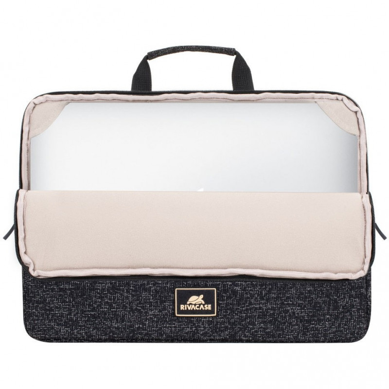 "Rivacase 7915. Case type: Sleeve case, Maximum screen size: 39.6 cm (15.6""), Carrying handle(s). Weight: 330 g. Surface coloration: Monochromatic"\n"HIGH-QUALITY WATER-RESISTANT TWEED MATERIAL