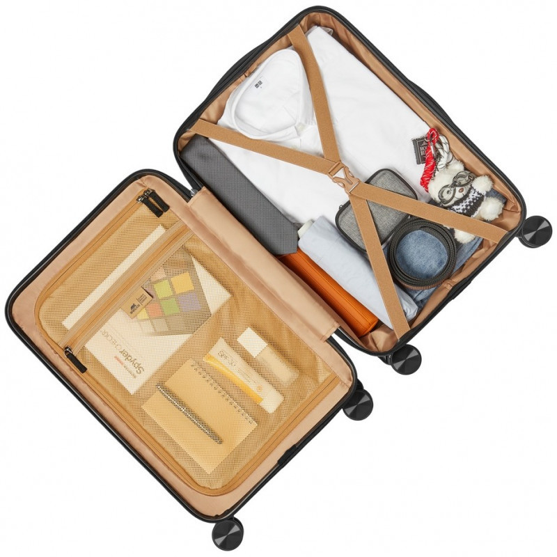 - Spacious rear compartment with cross straps, perfect for packing clothes and personal items