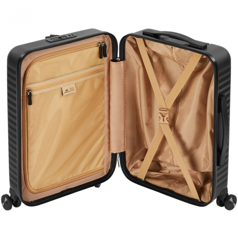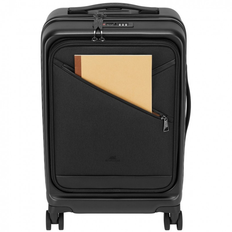 "Rivacase Clark. Luggage type: Trolley, Shell type: Hard shell, Product main colour: Black. Volume: 28 L, Size (imperial): 50.8 cm (20""), Notebook compartment dimensions (W x D x H): 265 x 35 x 360 mm. Material: Aluminium, Polycarbonate (PC), Polyester"\n"- Cabin luggage sized to meet carry-on requirements for most major airlines