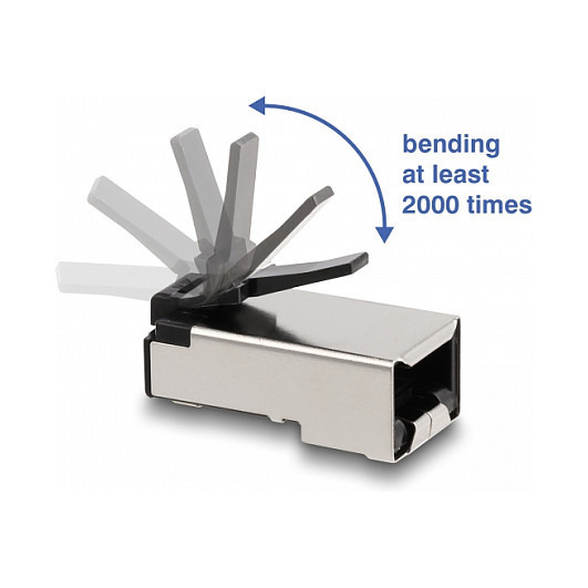 The robust RJ45 plug is ideal for industrial applications where plugs must be plugged and unplugged frequently. Compared to conventional plugs, the industrial plug can be plugged and unplugged up to 2,000 times without the latching lug will be bent or breaking off.