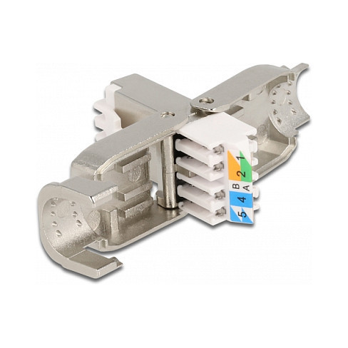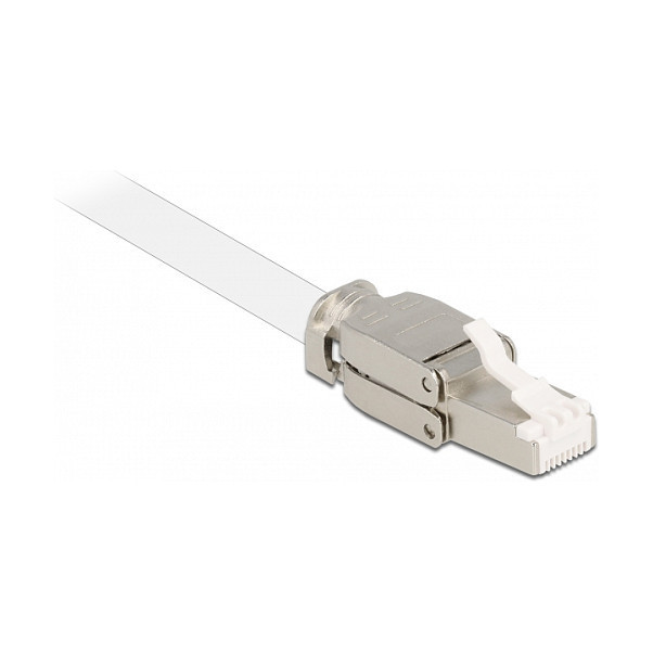 "DeLOCK RJ45 plug Cat.6 STP toolfree. Connector(s): RJ45, Product colour: Zinc, Connector gender: Male. Outer diameter: 8.5 mm, Width: 14.4 mm, Depth: 42.2 mm. Quantity per pack: 1 pc(s), Package type: Polybag. Country of origin: China"\n"This RJ45 plug by Delock can be used to connect network cables. Installation of the plug to various cable types is tool-free and time-saving."