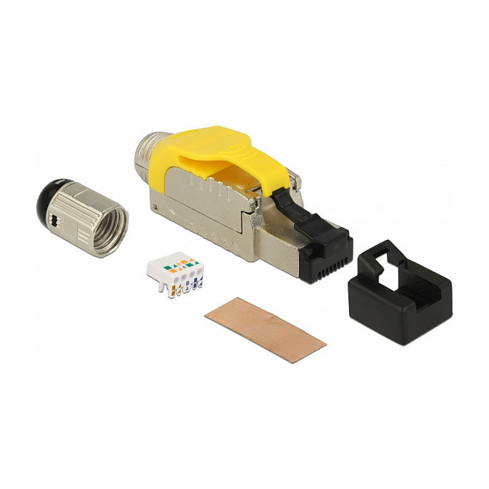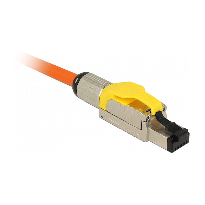 "DeLOCK 86287. Connector(s): RJ-45, Product colour: Silver, Yellow, Material: Zinc. Width: 18.4 mm, Depth: 66 mm, Height: 13.8 mm. Package type: Polybag"\n"This RJ45 plug by Delock can be used to connect network cables. Installation of the plug to various cable types is tool-free and time-saving."