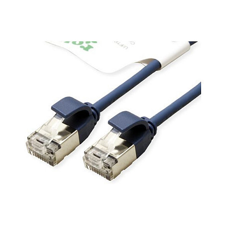 "ROLINE GREEN 21.44.3345. Cable length: 2 m, Cable standard: Cat6a, Cable shielding: U/FTP (STP), Connector 1: RJ-45, Connector 2: RJ-45, Connector contacts plating: Gold, Data transfer rate: 10000 Mbit/s, Product colour: Blue"\n"Category 6a twisted-pair patch cable with shielded RJ-45 connectors on both sides. Particularly thin and flexible cable with individual pairs of wires in aluminium-laminated foil for use in confined spaces, such as in data centres."