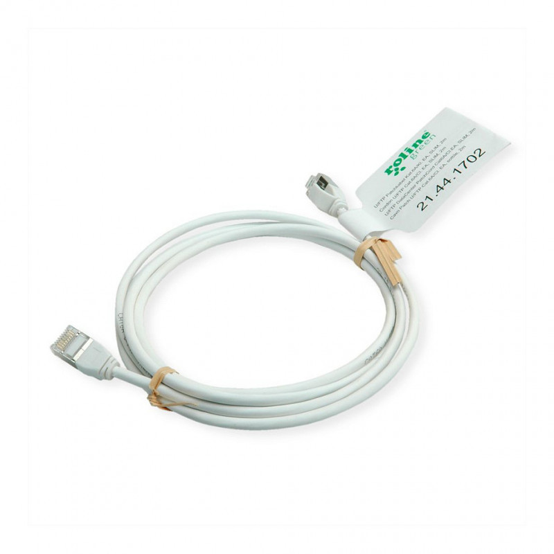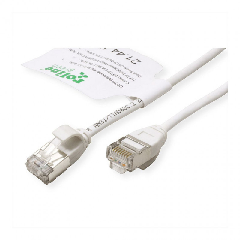 "ROLINE GREEN 21.44.1703. Cable length: 3 m, Cable standard: Cat6a, Cable shielding: U/FTP (STP), Connector 1: RJ-45, Connector 2: RJ-45, Connector contacts plating: Gold, Product colour: White"\n"Category 6a twisted-pair patch cable with shielded RJ-45 connectors on both sides. Particularly thin and flexible cable with individual pairs of wires in aluminium-laminated foil for use in confined spaces, such as in data centres.