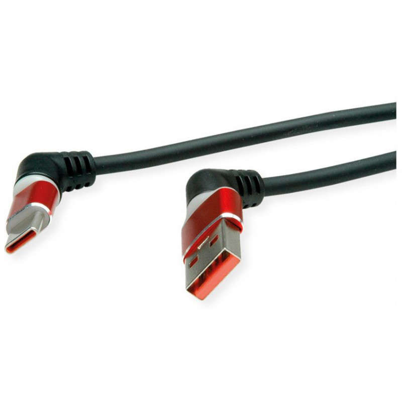 Įkroviklis | USB kabelis | ROLINE USB 2.0 Kabel Typ-C - Typ-A ST/ST 360 Rotation schwarz / rot 1m