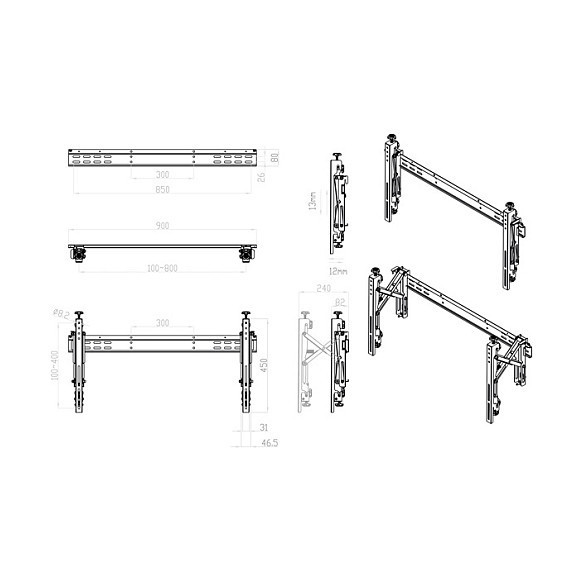 - Universal mount style fits various sizes of most displays with VESA max.600x400 mm