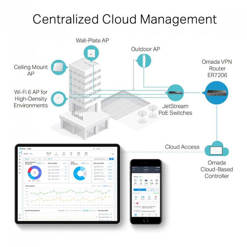 As the gateway that seamlessly integrates into the Omada Software Defined Networking (SDN) platform, ER7206 allows for remote and centralized management, anywhere, anytime. Standalone management via the Web UI or app is also available to maximize convenience.