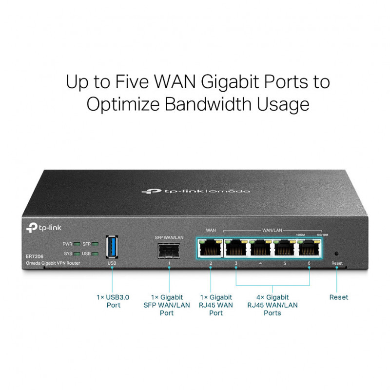 One gigabit SFP WAN port, one gigabit RJ45 WAN port, and two freely interchangeable WAN/LAN ports allow the router to support up to four WAN ports to satisfy various internet access requirements through one device. The multi-WAN Load Balancing function distributes data streams according to the bandwidth proportion of every WAN port to raise the utilization rate of multi-line broadband.