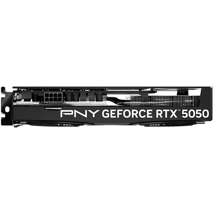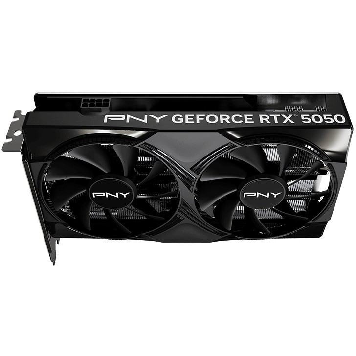 "PNY GeForce RTX 5050. Graphics processor family: NVIDIA, Graphics processor: GeForce RTX 5050, Processor frequency: 2317 MHz. Discrete graphics card memory: 8 GB, Graphics card memory type: GDDR6, Memory bus: 128 bit. Maximum resolution: 7680 x 4320 pixels. DirectX version: 12 Ultimate, OpenGL version: 4.6. Interface type: PCI Express x8 5.0. Cooling type: Active, Number of fans: 2 fan(s)"\n"Step up to NVIDIA Blackwell architecture with PNY GeForce RTX™ 5050, featuring 4th-gen Ray Tracing Cores and 5th-gen Tensor Cores for game-changing AI capabilities and performance in top games and apps."