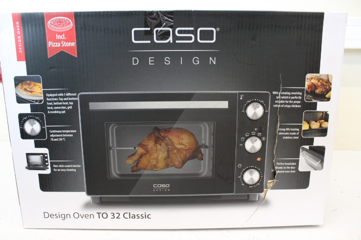 SALE OUT. Caso Design Oven TO 32 Classic, +pizza stone, 5 functions, Black | Caso Design Oven | TO 32 Classic | 32 L | 1850 W | Black | DAMAGED PACKAGING, DOORS CROOKED