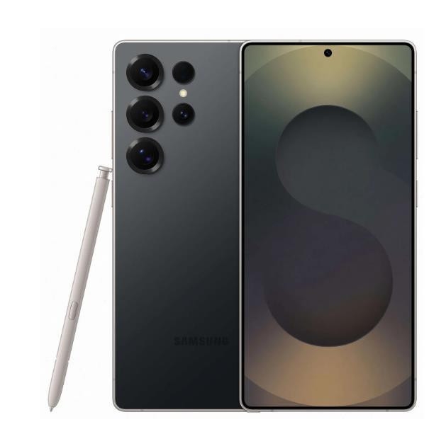 "Samsung Galaxy S25 Ultra . Display diagonal: 17.5 cm (6.9""), Display resolution: 3120 x 1440 pixels. Processor frequency: 3.5 GHz, Processor family: Snapdragon, Processor model: 8 Elite. RAM capacity: 12 GB, Internal storage capacity: 512 GB. Rear camera resolution (numeric): 200 MP, Rear camera type: Quad camera. SIM card capability: Dual SIM. Operating system installed: Android 15. Battery capacity: 5000 mAh. Product colour: Black, Titanium. Weight: 218 g"\n"Simple. Impactful