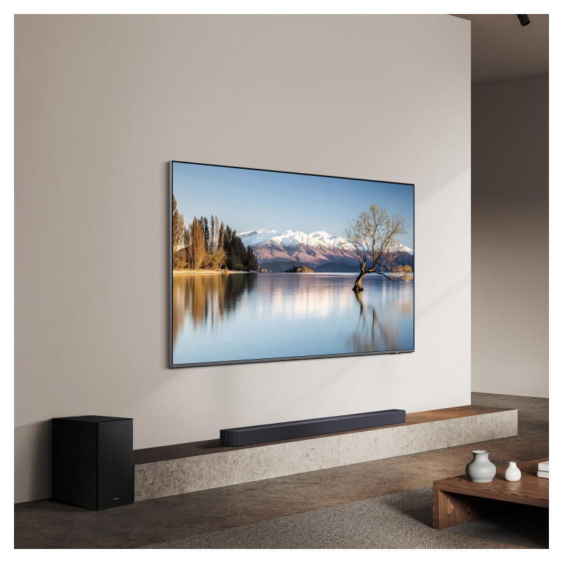 "Samsung Q-series HW-Q600F. Audio output channels: 3.1.2 channels, Audio decoders: DTS Virtual:X, Dolby Atmos, Dolby Digital 5.1, Dolby Digital Plus, Dolby TrueHD, Equalizer modes: Adaptive, Game Pro, Standard, Surround Sound Expansion. Subwoofer connectivity: Wireless. Product colour: Black, Colour name: Titan Black, High Dynamic Range (HDR) technology: High Dynamic Range 10+ (HDR10 Plus). Connectivity technology: Wired & Wireless. Soundbar power consumption: 34 W, Subwoofer power consumption: 40 W, Power consumption (standby): 0.5 W"\n