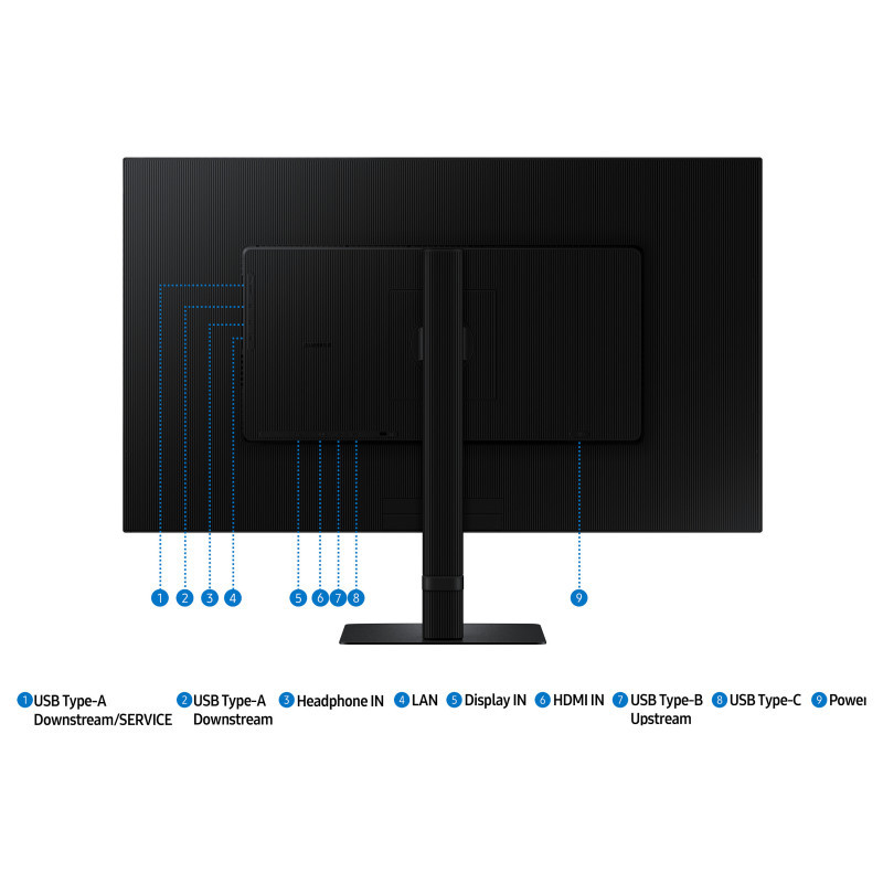 "Samsung S80UD. Display diagonal: 81.3 cm (32""), Display resolution: 3840 x 2160 pixels, HD type: 4K Ultra HD, Display technology: LCD, Response time: 5 ms, Native aspect ratio: 16:9, Viewing angle, horizontal: 178°, Viewing angle, vertical: 178°. Built-in USB hub, USB hub version: 3.2 Gen 1 (3.1 Gen 1). VESA mounting, Height adjustment. Product colour: Black"\n