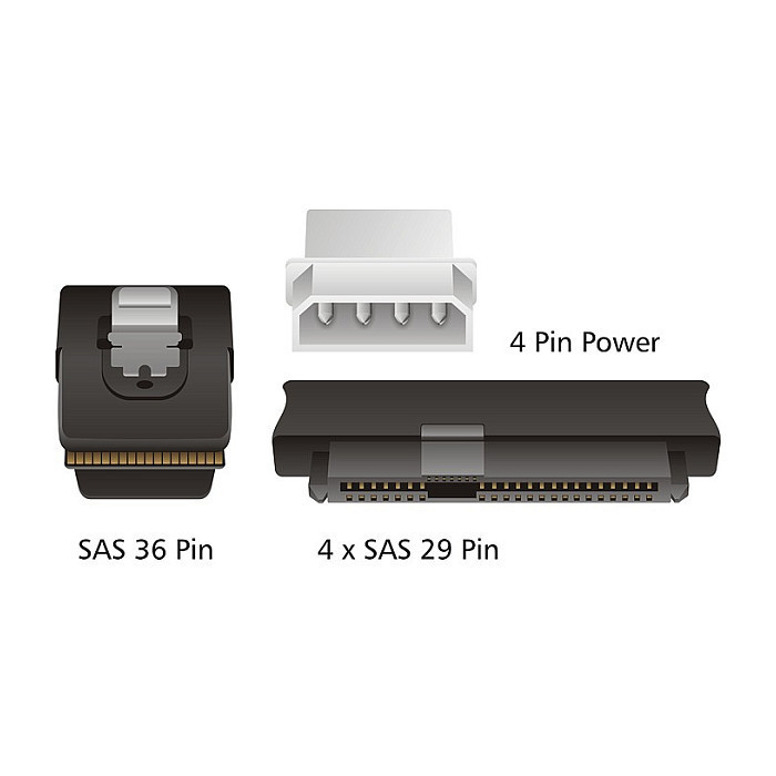 - Mini SAS 36pin - 4 SAS 29pin + 5.25” Power