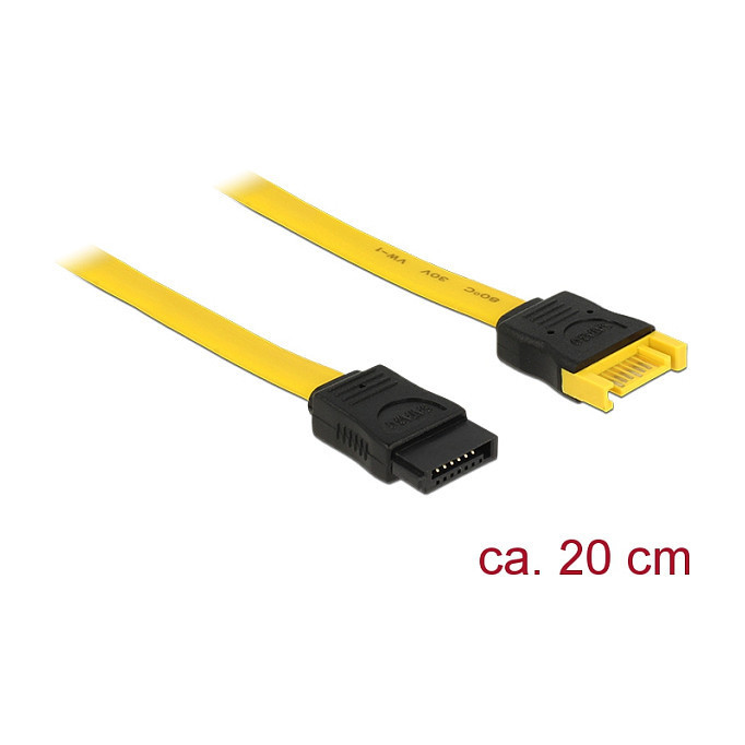 "DeLOCK 83949. Cable length: 0.2 m, Cable type: SATA III, Connector 1: SATA 7-pin. Package type: Polybag"\n"This SATA cable by Delock complies with the latest standard and supports a data transfer rate of up to 6 Gb/s. It enables you to extend the SATA interface and can be used for connection of your devices with SATA 7 pin port. Furthermore the SATA 6 Gb/s interface is downwards compatible to the former SATA versions, whereas you can only achieve the respective transfer speed."
