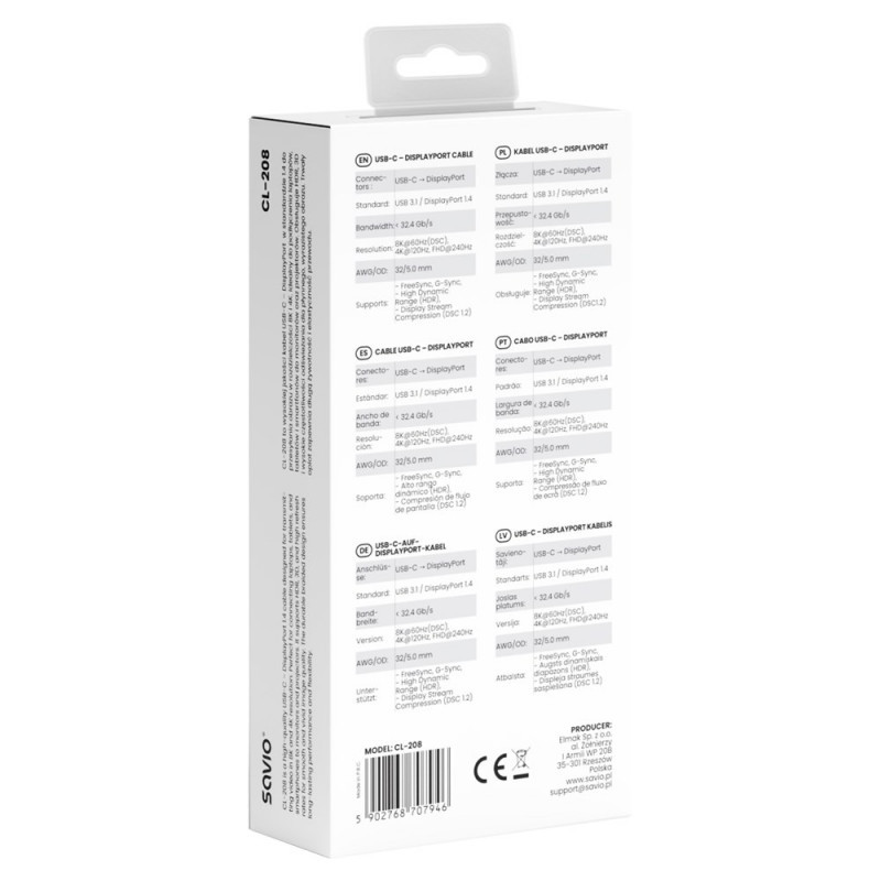 Savio CL-208 USB kabelis USB 3.2 Gen 1 (3.1 Gen 1) 2 m USB C Juoda, Pilka