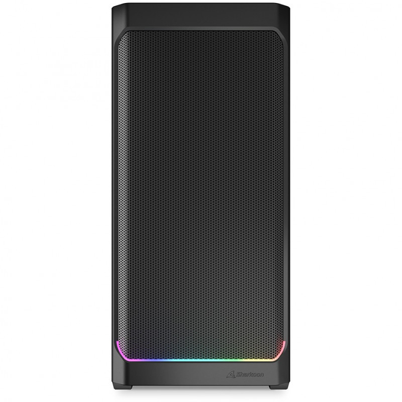 "Sharkoon AK4W RGB Strip. Form factor: Midi Tower, Type: PC, Product colour: Black. Front fans installed: 3x 120 mm, Front fans diameters supported: 120 mm, Side fans diameters supported: 120,140 mm. Supported HDD sizes: 2.5,3.5"". Width: 225 mm, Depth: 460 mm, Height: 485 mm"\n"Functional and stylish: The AK4W RGB Strip has plenty of space for modern hardware, room for up to eleven fans, and a tempered-glass side panel that provides a clear view of the installed hardware inside. The front panel has an integrated RGB strip along the base of the air-permeable mesh grille, providing a visual highlight in 16.7 million colors. On the top panel, the case is rounded off with up-to-date ports for a wide range of mobile and peripheral devices.