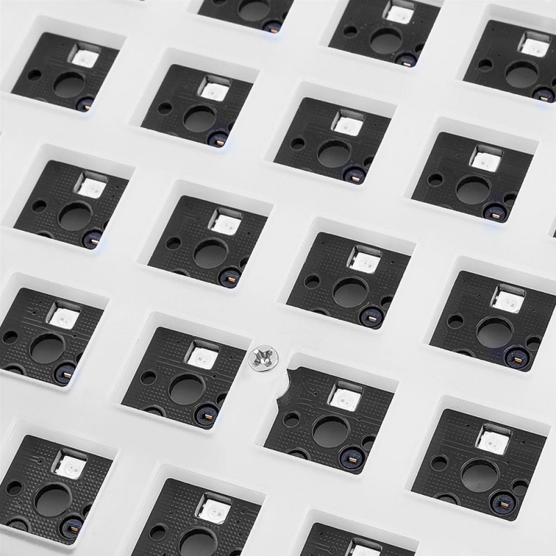 The SKILLER SGK50 S3 Barebone is supplied without switches or keycaps, allowing for the maximum possibilities of customization. The keyboard can be installed with almost any commercially available switches and be fitted with keycaps made of a material that suits the user's taste. Thanks to a clever PCB and the included positioning plates, all ANSI and ISO layouts are covered regardless of the language.