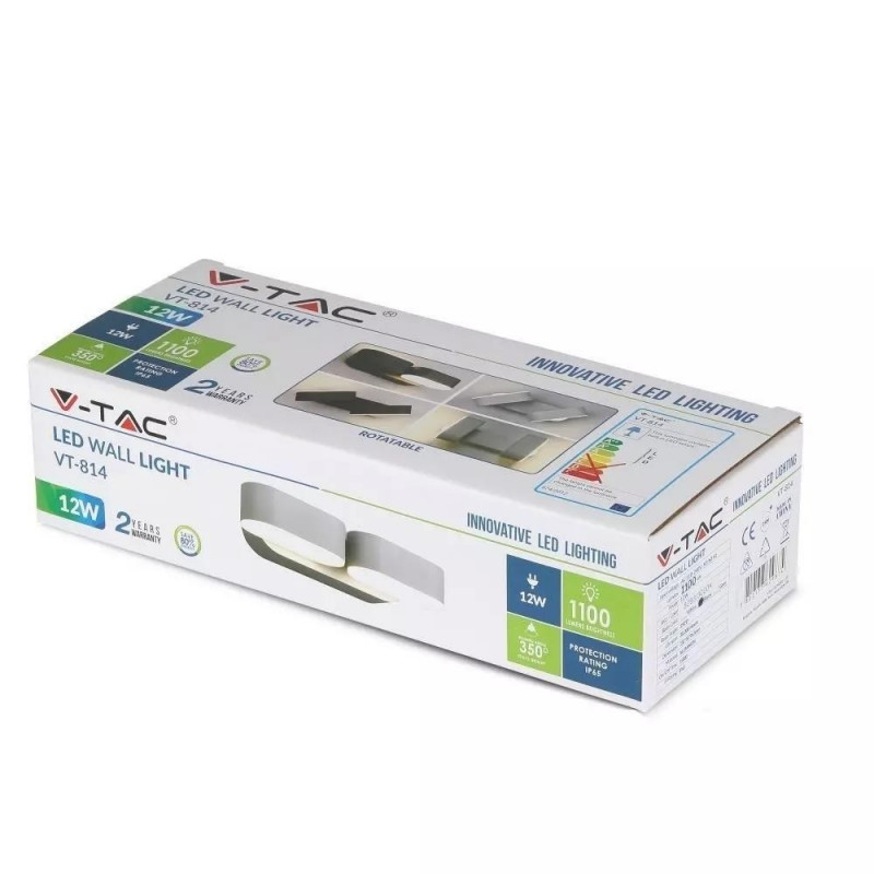 Sieninis šviestuvas V-TAC VT-814 pasukamas 12W LED IP65 3000K 1100lm (SKU 8293) Juoda