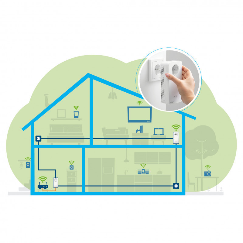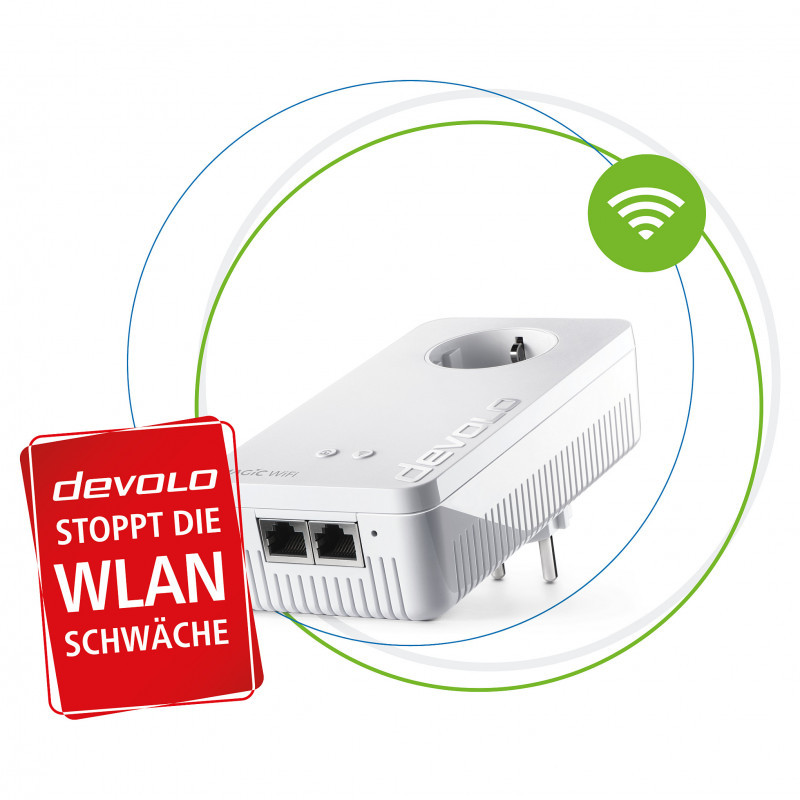 "Devolo Magic 2 Wifi next Single. Maximum data transfer rate: 1200 Mbit/s, Power plug: Type F, Ethernet LAN interface type: Gigabit Ethernet. Product colour: White, Antenna type: Internal. Windows operating systems supported: Windows 10, Windows 7, Windows 8, Windows 8.1, Linux operating systems supported: Ubuntu 14.04, Ubuntu 14.10, Ubuntu 15.04, Ubuntu 15.10, Ubuntu 16.04, Ubuntu 16.10, Ubuntu 17.10,..., Mac operating systems supported: Mac OS X 10.10 Yosemite, Mac OS X 10.11 El Capitan, Mac OS X 10.12 Sierra, Mac OS X 10.13 High.... Quantity per pack: 1 pc(s)"\n