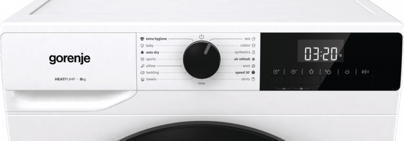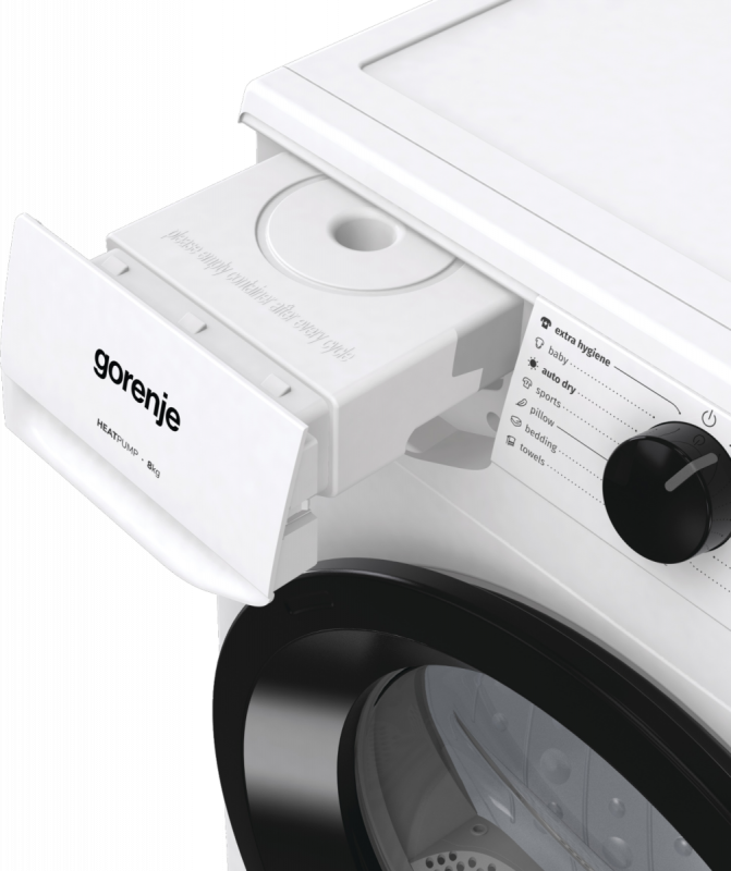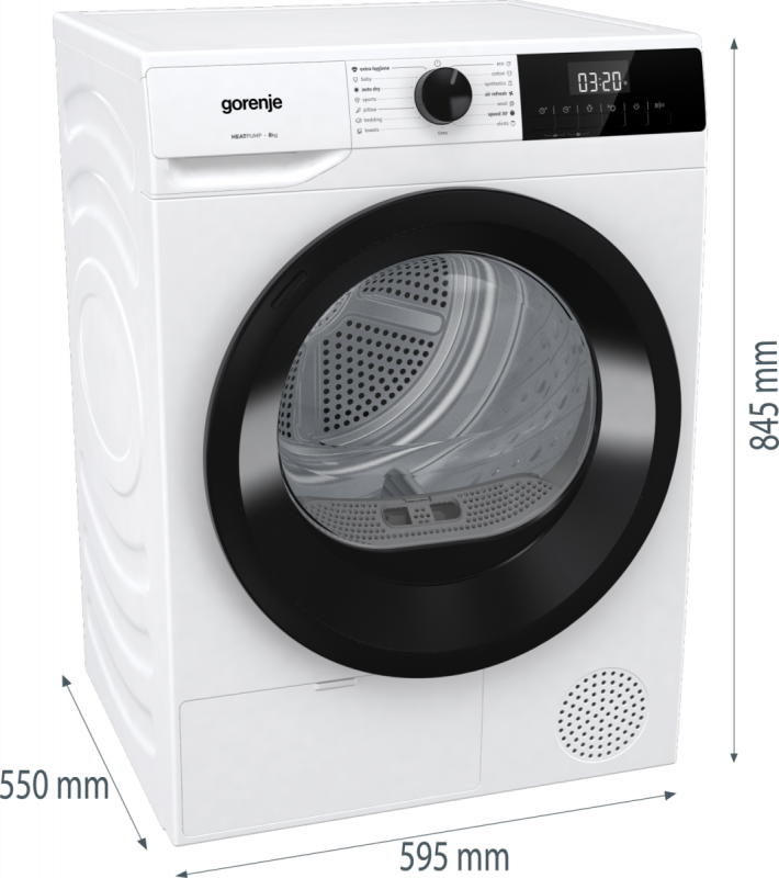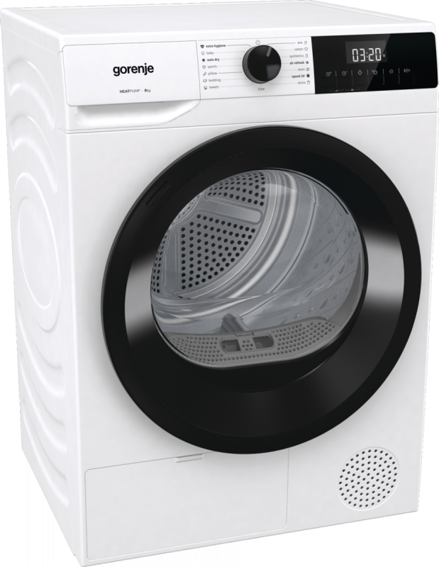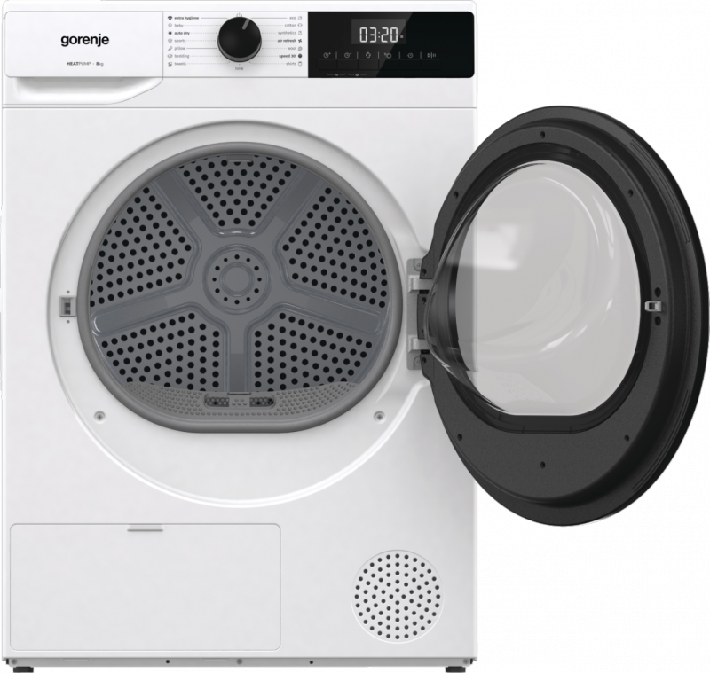 Skalbinių džiovyklė Gorenje Dryer Machine | DHNE82 | Energy efficiency class Class D | Front loading | 8 kg | LED | Depth 55 cm | White