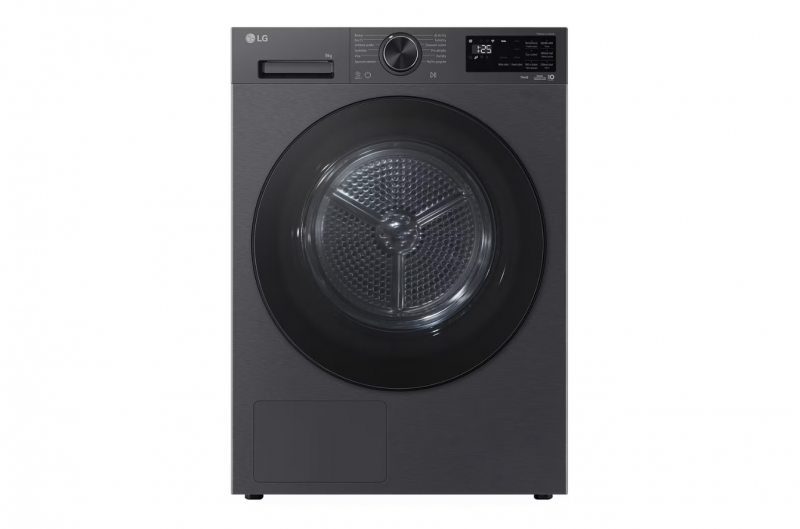 LG Dryer Machine | RHX5009TBB | Energy efficiency class B | Front loading | 9 kg | Heat pump | LED | Depth 66 cm | Wi-Fi | Matte black