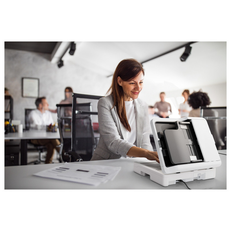 "Epson WorkForce DS-1730. Maximum scan size: 215.9 x 297 mm, Optical scanning resolution: 1200 x 1200 DPI, Input colour depth: 30 bit. Scanner type: Flatbed & ADF scanner, Product colour: Black, White. Sensor type: CIS, Daily duty cycle (max): 3000 pages, Light source: RGB LED. Standard input capacity: 60 sheets. Maximum ISO A-series paper size: A4, Scanning media types supported: Business Card, Plastic Card, ISO A-series sizes (A0...A9): A4, A5, A6"\n"The DS-1730 is the perfect business solution for users seeking a flatbed scanner that balances affordability with impressive performance. This scanner delivers reliable and consistent quality, meeting professional standards, without exceeding budget constraints. With a simple, unobtrusive design and compact footprint, the DS-1730 empowers users to achieve professional results."