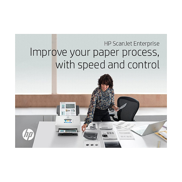 "HP Scanjet Enterprise Flow N7000. Maximum scan size: 216 x 3098 mm, Optical scanning resolution: 600 x 600 DPI, Input colour depth: 48 bit. Scanner type: Sheet-fed scanner, Product colour: White, Display diagonal: 7.11 cm (2.8""). Sensor type: CMOS CIS, Daily duty cycle (max): 7500 pages, Light source: LED. Auto document feeder (ADF) input capacity: 80 sheets. Maximum ISO A-series paper size: A4, Scanning media types supported: Business Card, Auto Document Feeder (ADF) media weight: 43 - 350 g/m²"\n"Give your office high-volume scanning performance. Recommended for 7500 pages per day.
